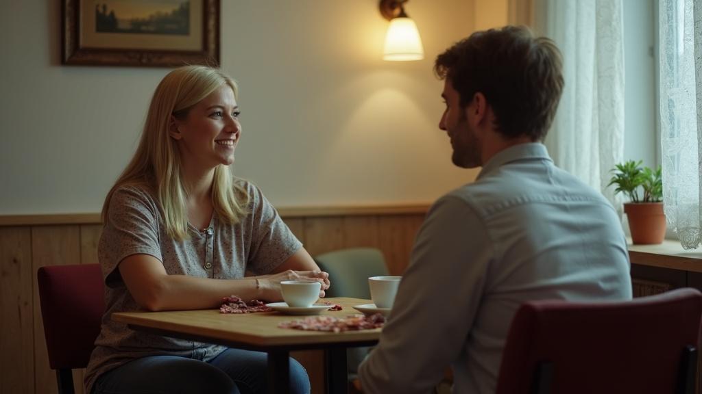 Ирина вовсе не ожидала, что на встречу в кафе придёт настолько привлекательный и располагающий молодой человек, поэтому вышла из-за угла и подошла к его столику, на лице заиграла приветливая улыбка.