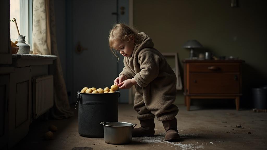 С уходом бабы Надежды все ухудшилось. Мама уходила днем и возвращалась ночью, когда девочка уже спала. Еды в доме часто не было, и Олеся довольствовалась вареной картошкой и хлебом.