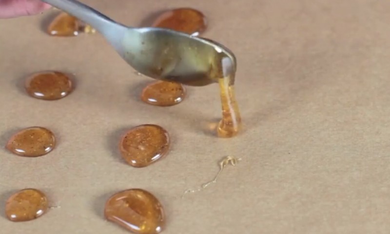Используйте ложку, чтобы распределить мелкие капли на лист бумаги для выпечки. Подождите, пока капли не застынут.