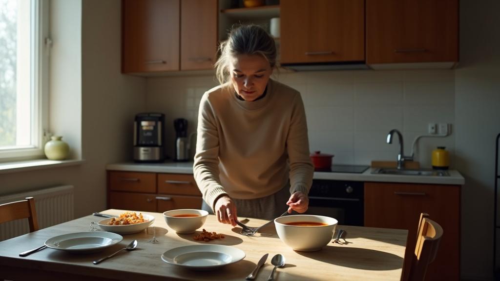 Вечером, когда муж пришёл с работы — усталый, с припорошённой снегом шапкой, — Тамара накрыла на стол, поставила рассольник и гречку с тушёной говядиной.