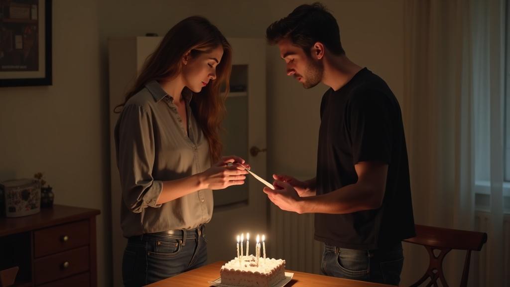 Позже вечером торт всё ещё стоял нетронутым посреди кухни; воздух стал густым и вязким от напряжения между ними — как сырой туман над болотом. Кристина подошла к столу с ноутбуком в руках; Богдан сидел на диване перед выключенным телевизором с пустым взглядом.