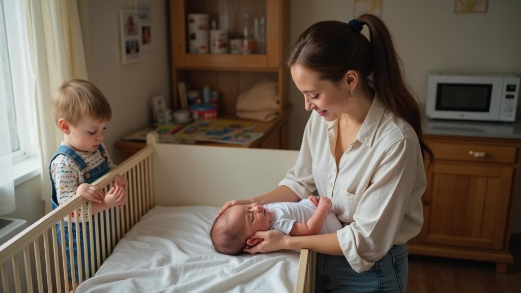 Оксана, укачав на руках своего трёхмесячного малыша, бережно переложила его в кроватку. Она с нежностью посмотрела на спящего Макарчика — тот мирно посапывал, словно маленький ангел. Молодая мама приложила палец к губам, призывая к тишине. Рядом спокойно сидел её двухлетний племянник Захар и увлечённо рассматривал картинки в книжке. Но стоило ему заметить, что тётя уложила Макара, как глаза его радостно заблестели — теперь Оксана сможет поиграть с ним.