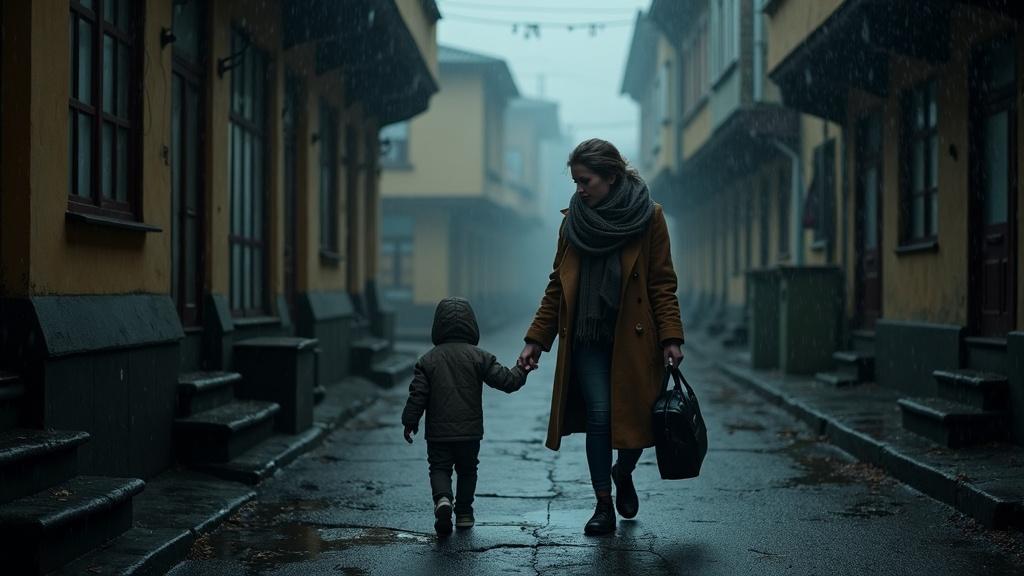 Никто не ответил, но за старой ржавой горкой что-то шевельнулось. Александра шагнула вперёд; сердце забилось чаще. Она осторожно наклонилась и различила в полумраке фигурку ребёнка — худенький мальчик лет пяти съёжился от холода и страха.