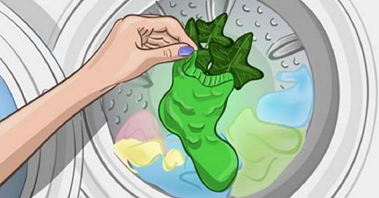Вот как: Возьмите горсть листьев плюща и оторвите их друг от друга в серединке. Теперь поместите их в носок или сетку-мешок для белья. Завяжите носок или закройте мешок и просто бросьте его в машину с вашим бельем. Вот и все! Запустите машину и пусть листья плюща творят свою магию.