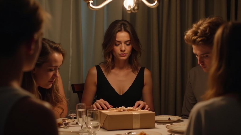 Галина откашлялась и поправила ворот рубашки. Подруга Кристина легонько подтолкнула мужа локтем — тот слишком явно следил за происходящим. Жанна уставилась на узор скатерти, делая вид, что ничего не замечает.