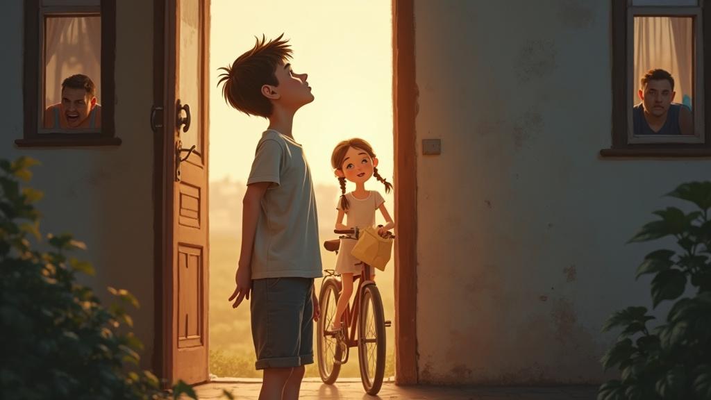— Леся, Леся! — под окном старенькой пятиэтажки с хлопающей дверью подъезда, которая едва держится на петлях, стоит мальчишка с велосипедом и, задрав голову вверх, зовёт кого-то. — Лесяяяя, Лесь…