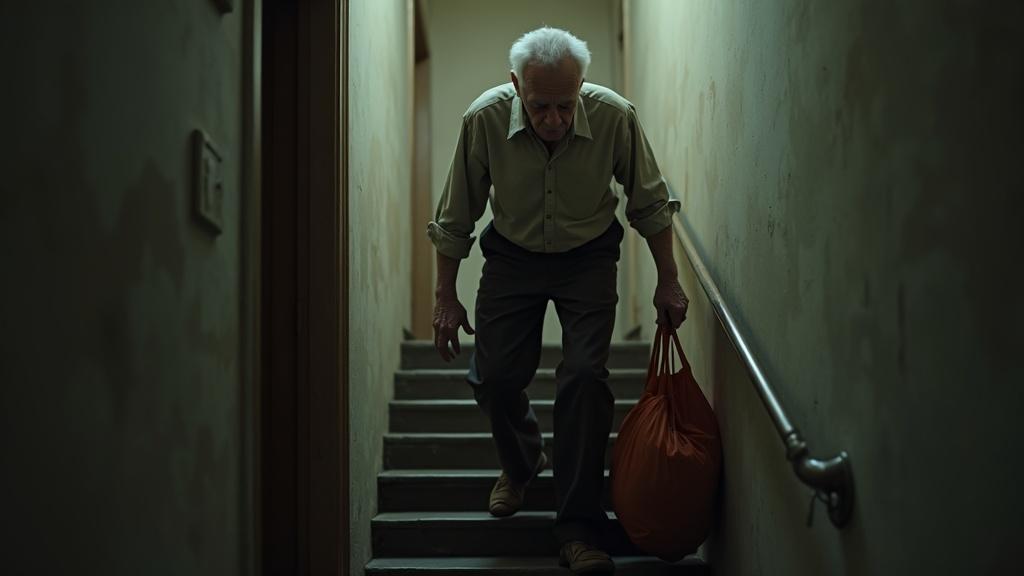 Богдан посмотрел вниз и увидел Григория, который медленно поднимался по лестнице, крепко держась обеими руками за перила и таща за собой хозяйственную сумку на колёсиках. Подъём давался ему с трудом: несколько ступенек — остановка, опора на перила, передышка. Лицо налилось краской от напряжения, дыхание было прерывистым и тяжёлым — слышно даже этажом выше.