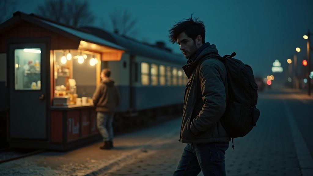 Богдан вышел из электрички. Сквозь темноту ночи едва угадывались очертания вокзального здания. На пустынной площади перед вокзалом одиноко мерцал свет в окошке шаурменной. Перекинув рюкзак на плечо, Богдан направился к торговому киоску, где приобрёл шаурму, а заодно получил от добродушного продавца горячий чай и лепёшку в придачу.