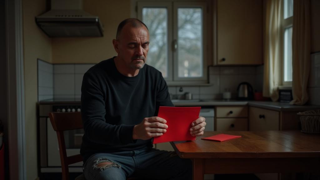 Тарас уже третий час просиживал за кухонным столом, делая вид, что работает за ноутбуком. Однако его взгляд то и дело возвращался к ярко-красному конверту, лежавшему сбоку — словно тревожный сигнал, не дававший покоя. Он снова взял его в руки, провёл пальцами по плотной бумаге и тяжело выдохнул.