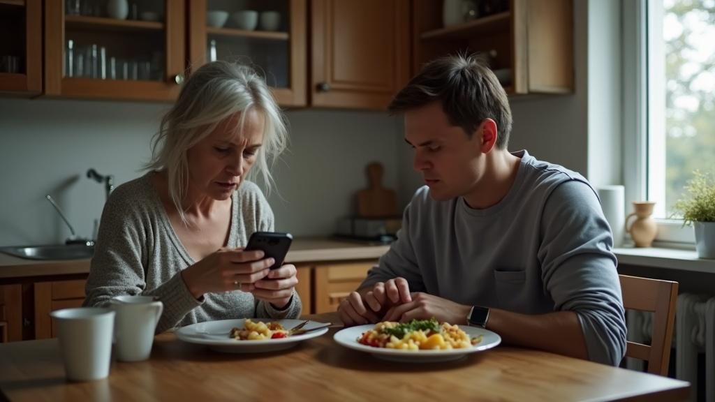 Виталий не отрывал взгляда от тарелки, сосредоточенно пережёвывая яичницу так, будто это требовало максимальной концентрации.