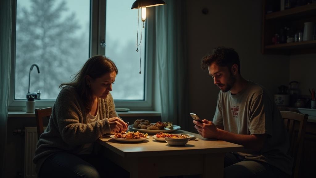 Богдан с демонстративной неторопливостью отодвинул тарелку, на лице застыло то самое выражение отвращения, которое Таня терпеть не могла уже больше десяти лет. Вилка звякнула о фаянс с неприятным звуком — будто кто-то провёл гвоздём по стеклу. За окном завывал ноябрьский ветер, швыряя в стекло мокрый снег вперемешку с дождём. Хотя на часах было всего шесть вечера, темень стояла такая, словно мир за окном давно исчез.