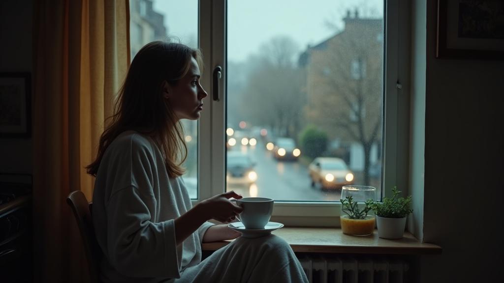 Оксана сидела на кухне, медленно размешивая остывший чай, и смотрела в окно. За стеклом моросил дождь, внизу по дороге тянулись вереницы машин, а прохожие торопились домой после рабочего дня.