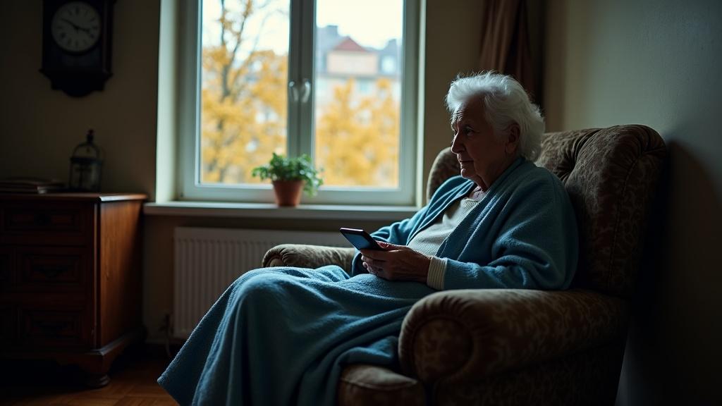 Ганна устроилась в своём любимом кресле у окна, наблюдая, как осенний ветер гоняет по двору пожелтевшие листья. На коленях лежал старенький плед — тот самый, что мама связала три десятилетия назад. Когда-то насыщенно-синий, теперь он поблек до мягкого голубого оттенка, но Ганна никак не решалась с ним расстаться. Только что завершился разговор с братом, но она так и не нажала кнопку завершения вызова. Телефон остался в её расслабленной руке на подлокотнике — болезнь за последний год сильно ограничила её движения.