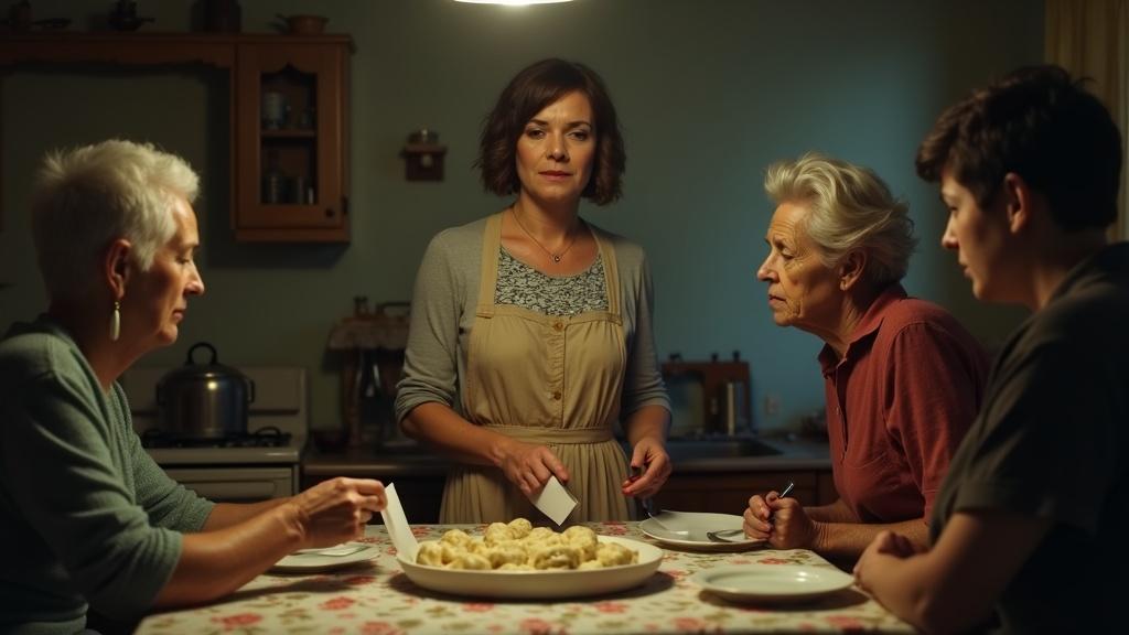 На кухне витал аромат свежеприготовленных мантов — горячих, сочных, с паром, щекочущим ноздри. Рядом стояла миска с приправой: зира, чёрный перец, соль, лук в уксусе и капля раскалённого масла — запах был настолько насыщенным, что слюнки подступали сами собой. Над всем этим повисал сладковатый шлейф духов «Красная Москва», исходящий от Ганны. Воздух казался плотным и тяжёлым, словно перед бурей. За столом с клеёнкой в цветочек собрались на «семейное совещание».