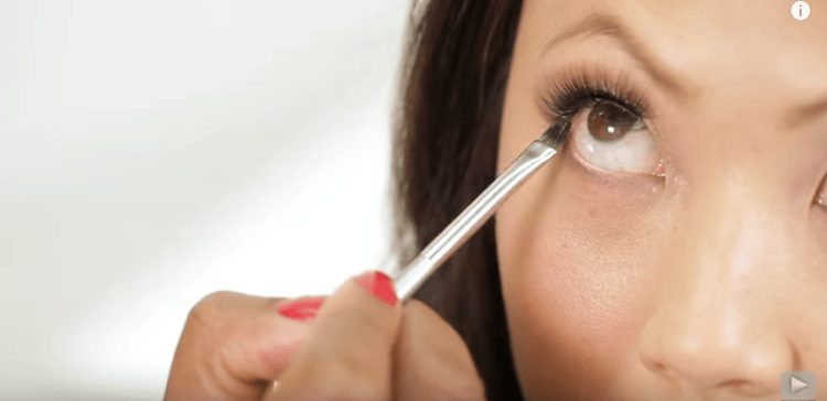 Если кость брови скрывает складку века, а в этом случае вообще ее нет, то мы используем косметику, чтобы ее создать. Начнем с базовой основы над глазом и под ним. Используйте контур тенями для глаз, делаем тень на углах, то есть V-образную форму. Используйте один и тот же цвет под глазом, оставляя гуще и темнее тон на внешнем углу и осветляя его по мере продвижения внутрь. Подводим ресницы и готово!