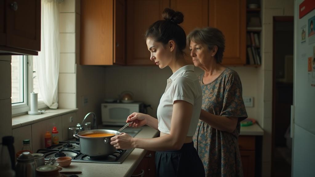 За пару часов до этой сцены Марта стояла у плиты, помешивая суп. В кухню вошла Людмила — жена дяди мужа.