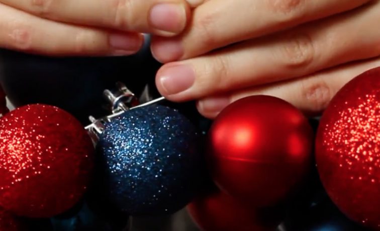Рождественские украшения на витринах, свет игристых огней, хозяйственные сумки, заполненные подарками, пряные ароматы зимы, проникающие сквозь холодный воздух — пришло время, чтобы принести с собой в дом немного праздничного вдохновения. Сегодня вы узнаете, как сделать великолепное украшение к празднику из елочных украшений шаров, его быстро и легко сделать. Все очень очень просто!