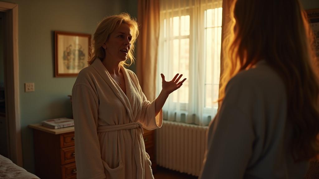Соседка, прищурившись и ехидно сверкая глазами, потуже затянула пояс на халате, скрывая рыхлый живот. Видно было: сплетни — её стихия. Словно получив новый заряд энергии, она продолжила с особым усердием — с тем самым тоном, каким говорят люди, уверенные в своём праве знать всё о всех.