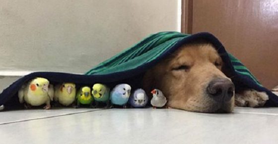 Золотой ретривер по кличке Боб самый большой пес в округе. Он невероятно дружелюбный, и любит обниматься с птицами и хомячками. Несмотря на различия в размерах, эти приятели прекрасно ладят и любят проводить свои время вместе в своем доме в Сан Пауло.