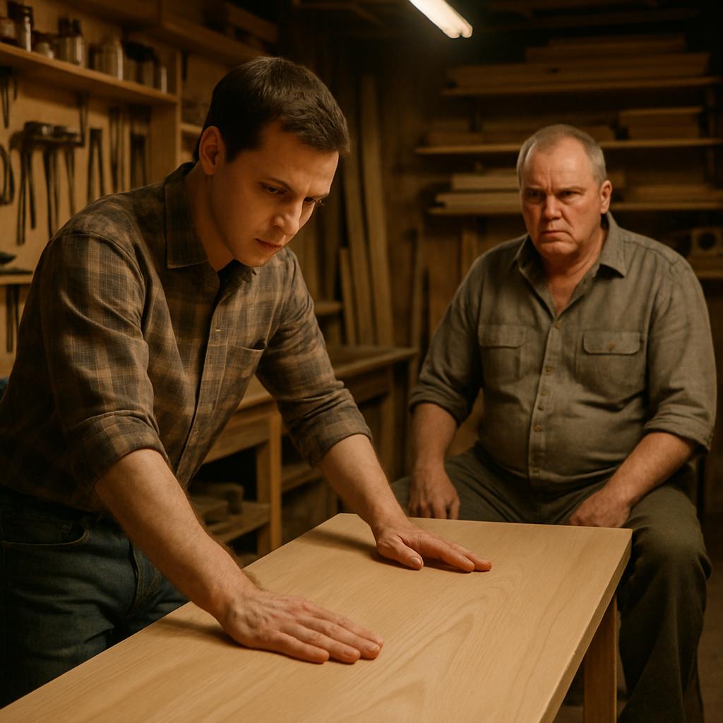 Мастерская Дмитрия всегда источала благородный аромат: свежий кедр, морилка и дорогой воск создавали атмосферу уюта и сосредоточенности. Это было его личное пространство, единственное место, где он ощущал себя кем-то важным, а не просто продолжением воли отца. Массивные станки, верстаки с чертежами — здесь он чувствовал себя созидателем. Дмитрий провёл ладонью по идеально выструганной поверхности будущей столешницы. Без сучков и трещин — как и жизнь, которую он тщательно выстраивал последние полгода.