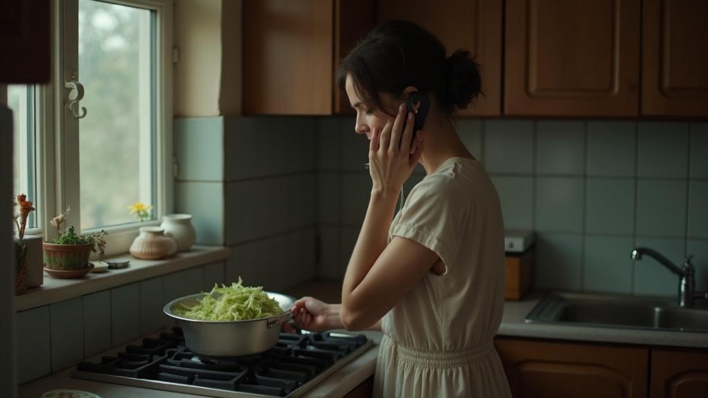 Голос Арсена в трубке звучал с приторной бодростью, словно он нарочно подчеркивал своё превосходство. Он был таким же навязчивым, как сироп на дешёвом бисквите. Виктория прижала телефон плечом и продолжала помешивать капустняк в кастрюле. На кухне витал запах кислой капусты, дешёвого маргарина и чего-то безнадежного.
