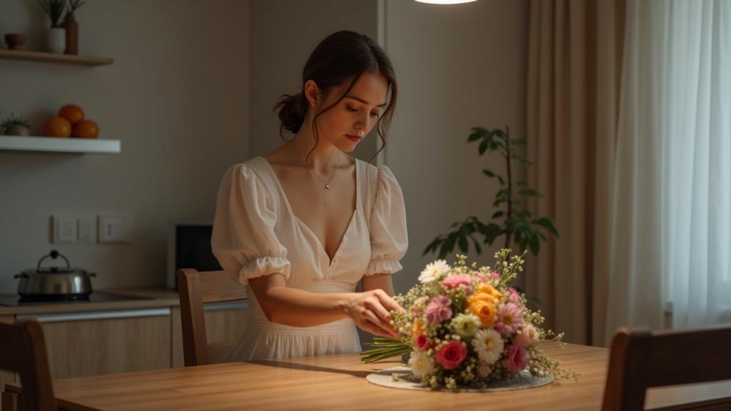 Эти слова немного её успокоили. Она начала готовиться к визиту: подбирала цветы для подарка и даже изучала их символику — очень хотелось произвести хорошее впечатление. Девушка выбрала своё любимое платье, сделала аккуратную причёску и лёгкий макияж — выглядела просто и элегантно одновременно.