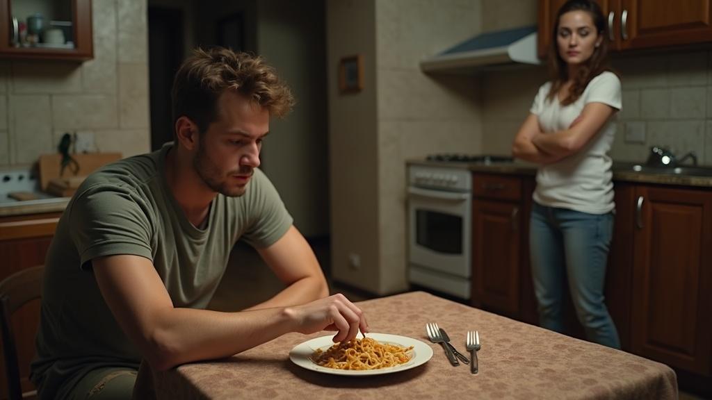 Оксана стояла у мойки и медленно выдыхала сквозь зубы. Казалось, ещё мгновение – и сковородка сама взлетит в воздух и приземлится точно в лоб этому самозваному гурману.