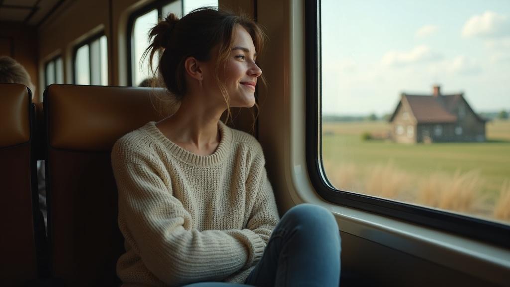 Оксана ехала обратно в свой родной город с давно забытым ощущением внутренней тишины. Вагоны плавно покачивались, словно убаюкивали, колёса отбивали ровный ритм, а за стеклом проплывали знакомые с детства картины: бескрайние поля, редкие перелески, где светлые берёзы перемежались с густыми елями, невысокие домики с покосившимися заборами и аккуратными огородами. Всё это было таким близким и понятным, что внутри болезненно сжалось. Оксана смотрела вдаль и неожиданно заметила, что улыбается — просто так, без особого повода.