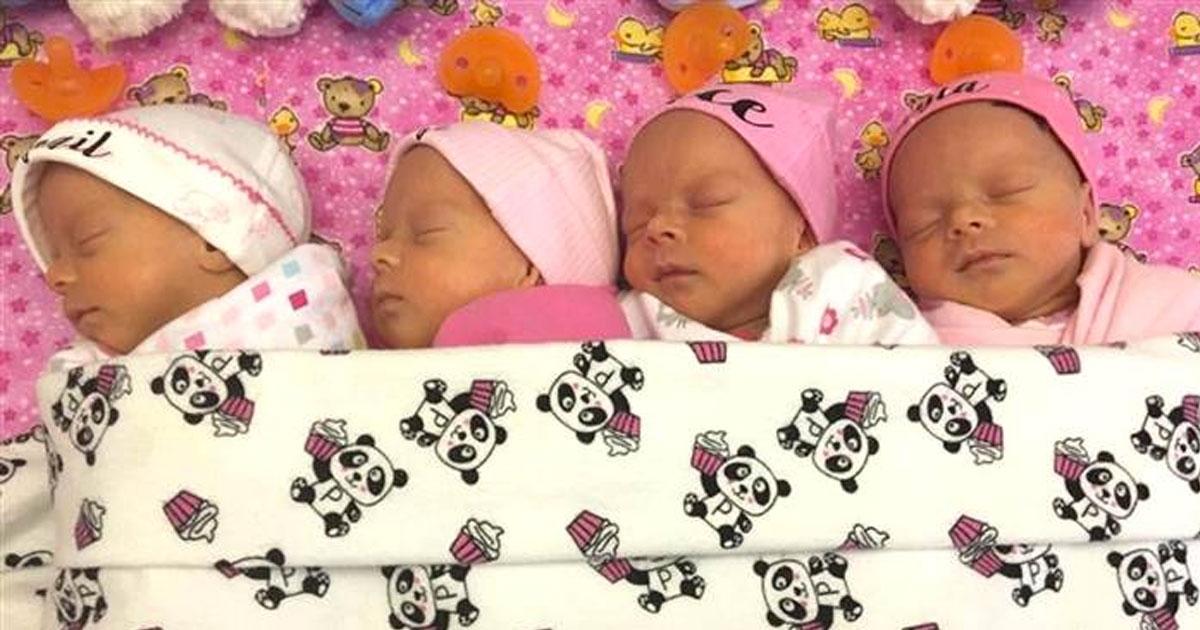 Четыре одинаковых новорожденных девочки были названы Абигайль, Грейс, Эмили, и Маккайла.