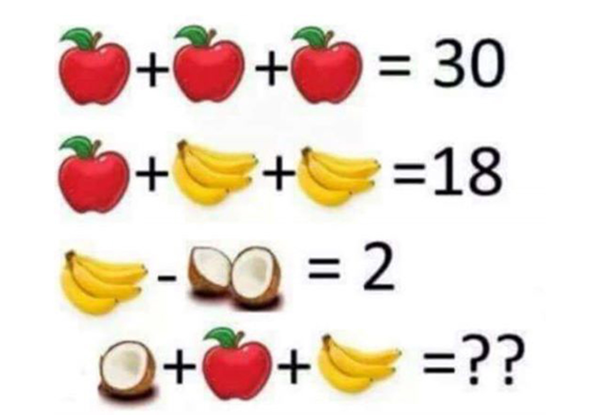 Вы должны найти значение каждого плода путем решения уравнений.