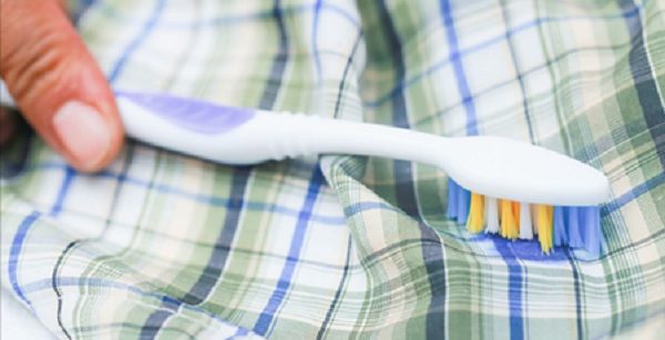 Теперь возьмите старую, но чистую зубную щетку и трите запятнанную область. Вы скоро увидите, что пятно заметно исчезает.