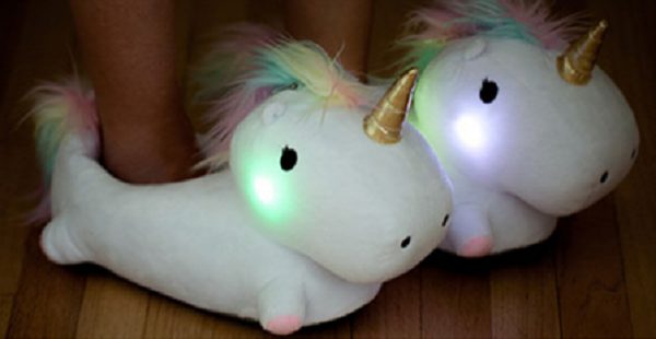 «Зажги свою жизнь, или, по крайней мере, подсвети свой путь в ванную, с нашими новыми и очень милыми тапочками!» пишет изготовитель. «Станьте предметом зависти всех ваших друзей, представьте как вы парадно шагаете к своей кровати в этих уютных единорогах!»