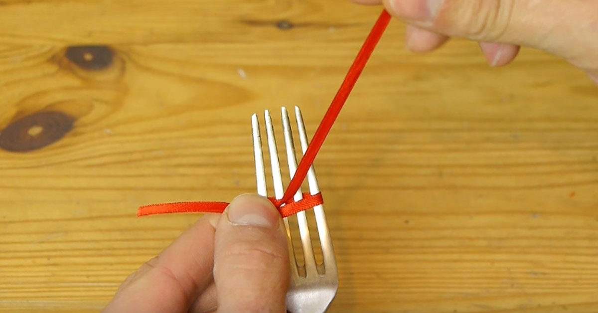 Вместо того, чтобы перед новогодними праздниками придумывать интересные луки для подарков — попробуйте наш проект. При помощи всего лишь вилки и ленты, вы можете создать красивый декор для подарочной упаковки, который отлично смотрится на чем угодно.
