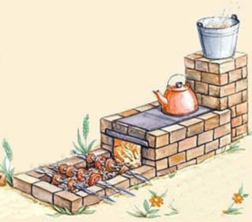 Если на трубу сверху поставить ведро без дна, то тяга в топке улучшится. Это «бюджетный» вариант летней печки, вы же, по вашим возможностям, и всегда можете внести свои дополнения и сможете сделать ее лучше.