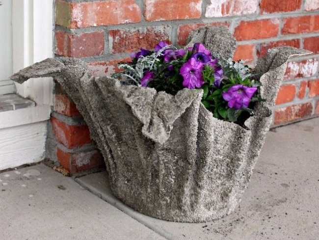 Вазон для цветов, который ты сейчас увидишь, очень легко сделать. Для этого необходимо старое полотенце, цемент и немного вдохновения. Я представляю себе реакцию твоих соседей… Они наверняка захотят смастерить подобное!